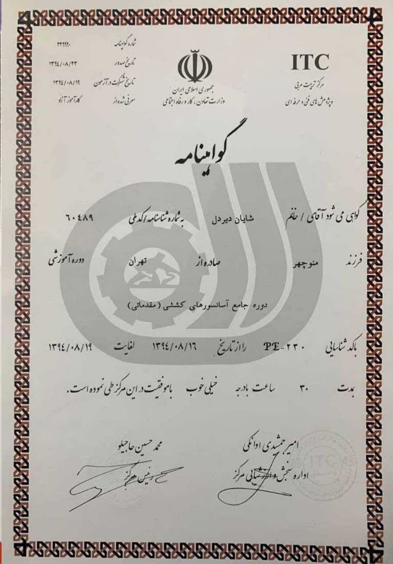 به استحضار میرساند عملکرد آن شرکت در راستای حفظ و نگهداری و بازسازی آسانسورهای شرکت متبوع در بازه 01/10/95 تاکنون، مورد تایید میباشد.